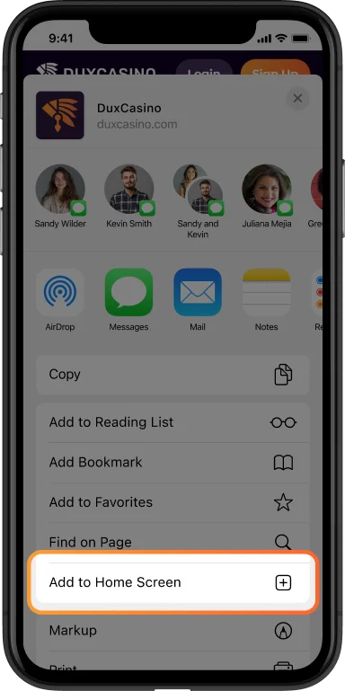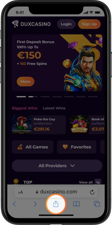 Open Duxcasino in Safari browser on your iOS device